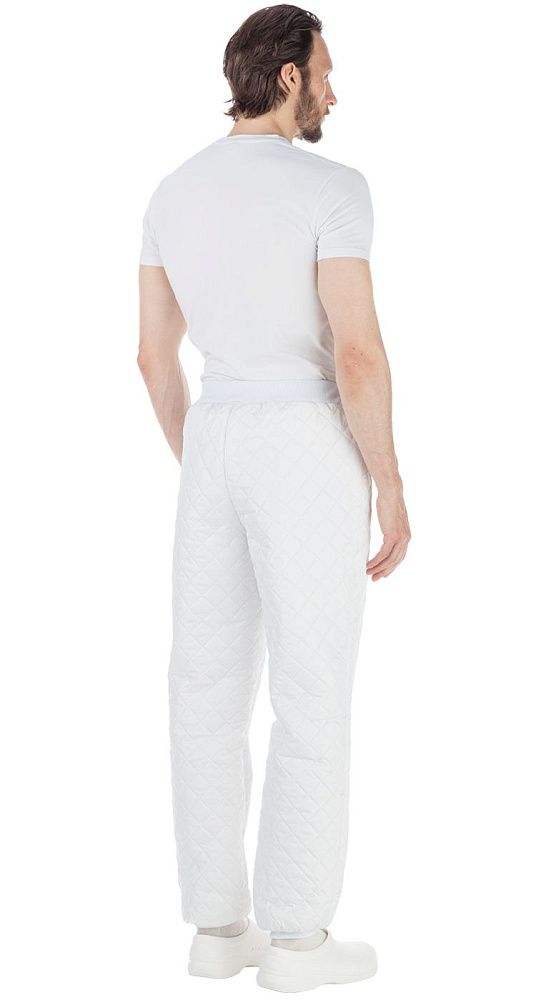 Стеганые брюки умеренного объема на резинке из трикотажа по поясу. Низ брюк на трикотажном манжете.