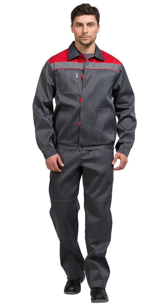 Костюм мужской рабочий летний "Тимбер" серый-красный с брюками